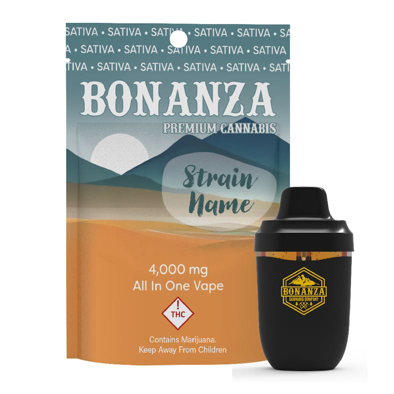 Bonanza All-In-One Vapes combine convenience and quality in a sleek, disposable design. Each device contains 4 grams of strain-specific cannabis extract, delivering smooth vapor, bold flavor, and consistent effects without the need for charging or refilling. Perfect for easy, on-the-go use, Bonanza AIO vapes are ready whenever you are. STRAIN TYPE: Sativa-dominant.