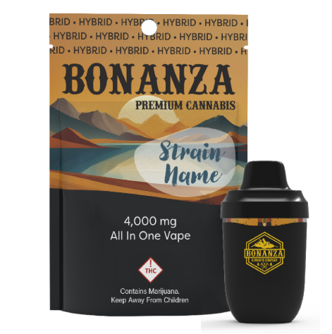 Bonanza All-In-One Vapes combine convenience and quality in a sleek, disposable design. Each device contains 4 grams of strain-specific cannabis extract, delivering smooth vapor, bold flavor, and consistent effects without the need for charging or refilling. Perfect for easy, on-the-go use, Bonanza AIO vapes are ready whenever you are.